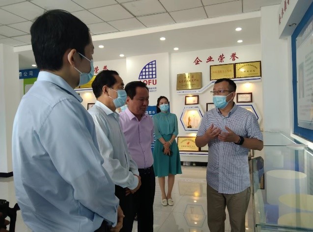 谢恩年一行参观了公司展厅及生产现场,武雄晖就公司的生产经营状况、产品研发、市场销售等做了详细汇报。
